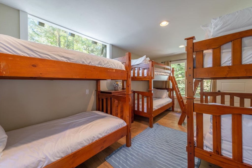 The Spruce Dorm has 3 sets of bunk beds (6 total twin beds). Beds can be rented by individuals or a group can opt to rent the entire room. If individuals choose to rent beds, we will make this room specifically for woman-identifying folks. If this room is rented by a group of friends, it is open to anyone. Call your yoga buddies and book a bunk!